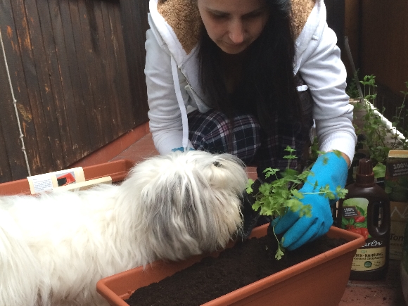 Prijateljica me je spomnila na vse to. Prinesla je korita, ker je vedela, da se drugače ne bom premaknila. Prinesla je nekaj prvih sadik. In se je začelo. Vse kar je sledilo je bila poezija. In ob pasji pomočnici to res ni bilo težko.