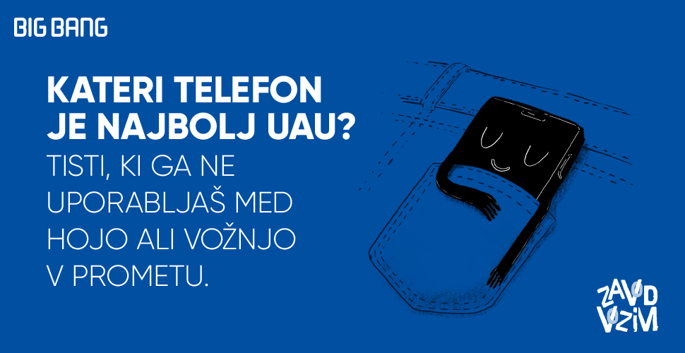 Da pa bi predvsem mladim (in seveda tudi ostalim udeležencem v prometu) približali zavedanje, kako pomembno je na cesti na prvo mesto postaviti svojo varnost in varnost drugih, namesto sporočil, klicev, družbenih omrežij, glasbe in drugih stvari, povezanih s tehnologijo, je Big Bang v sodelovanju z Zavodom Vozim in kreativnim studiem Trampolin pripravil akcijo, ki nagovarja stališče, da so najbolj UAU telefoni in slušalke tisti, ki se jih ne uporablja med udeležbo v prometu, saj tako ne ogrožamo sebe in ljudi okoli nas.
