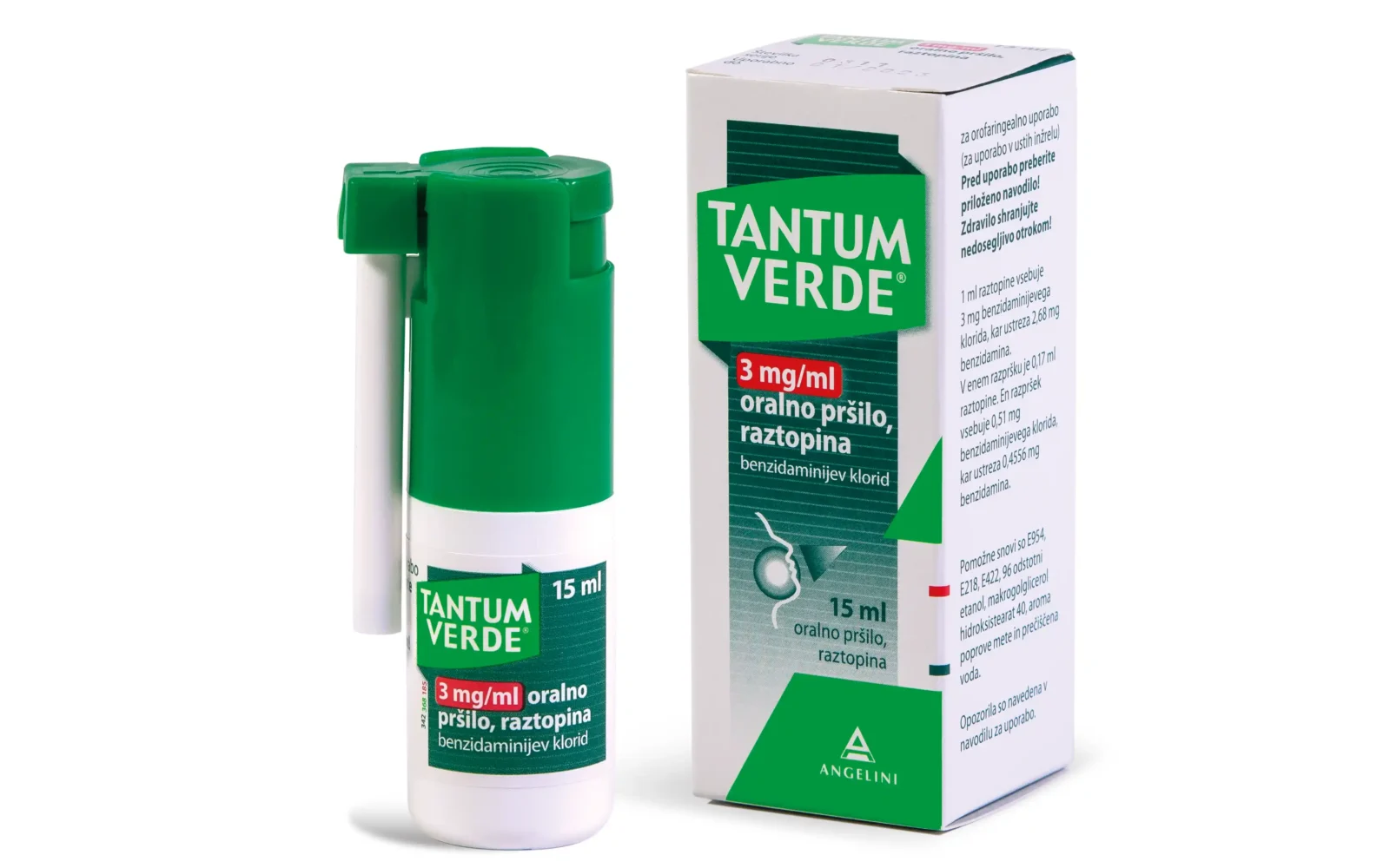 Tantum Verde 1,5 mg/ml oralno pršilo (tudi za dojenčke od 4 kg telesne teže dalje)