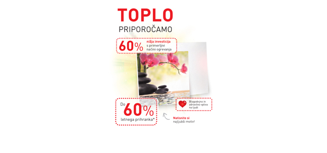 Ustavite se v Centru energetskih rešitev v ljubljanskem BTC-ju in si oglejte najnovejše termodinamične IR panele EKO TERMODYNAMIC 7+, blagovne znamke Vitalheizung, ki omogočajo tudi do 35 % prihranka električne energije v primerjavi z ostalimi IR paneli. Nova tehnologija panela z vgrajenim posebnim termodinamičnim sistemom regulacije, ki deluje neodvisno od termostata panela, omogoča avtomatičen izklop delovanja, pri tem pa ne izgublja sevalne moči in ne troši električne energije, a še vedno ogreva prostor.
