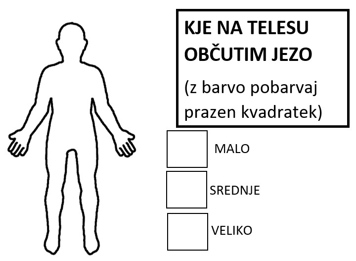 Oseba nato nariše obris telesa ali dobi pripravljen obris in označi, v katerih delih telesa občuti jezo v manjši, srednji ali veliki meri. Zavedanje zgodnjih telesnih znakov omogoča, da oseba začne ukrepati pravočasno, še preden pride do izbruha.